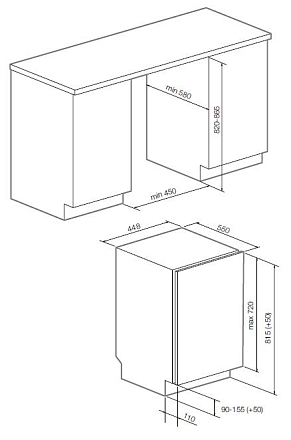 Размеры ниши для встраивания (В х Ш х Г), см