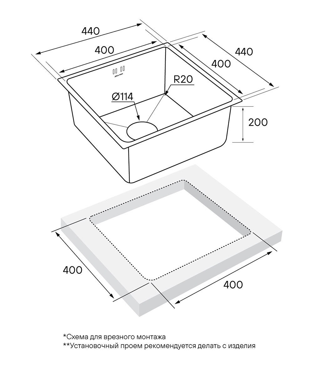- Комплект крепежей для подстольного монтажа; - Отводная арматура (слив-перелив); - Сифон бутылочного типа с подключением посудомоечной машины (ПММ).