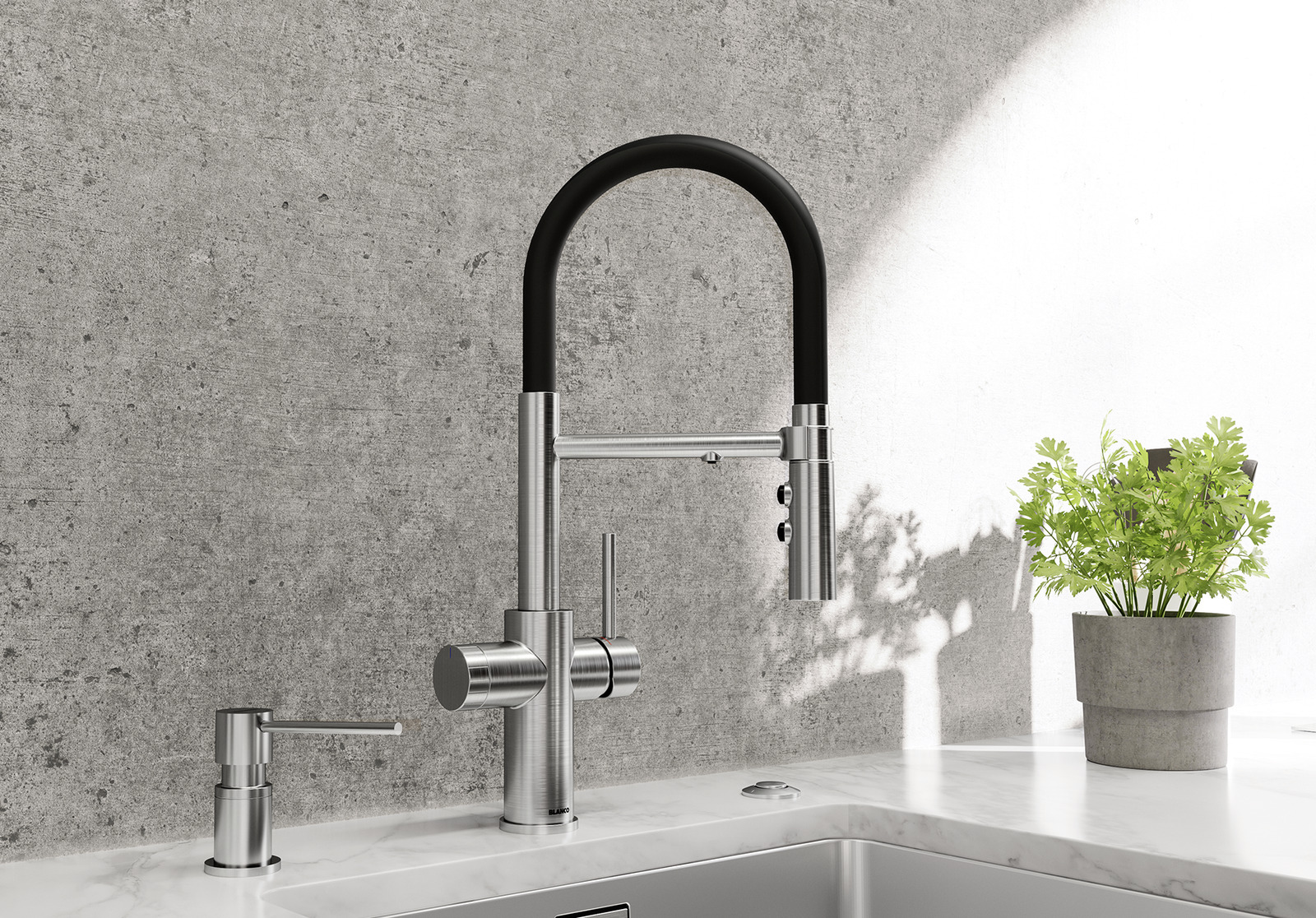 Смеситель CATRIS-S Flexo Filter 526707 от Blanco воплощает философию бескомпромиссного качества, инновационного дизайна и функциональности, превращая самое активное место на кухне в продуманный, эргономичный и эстетичный центр для приготовления пищи.
