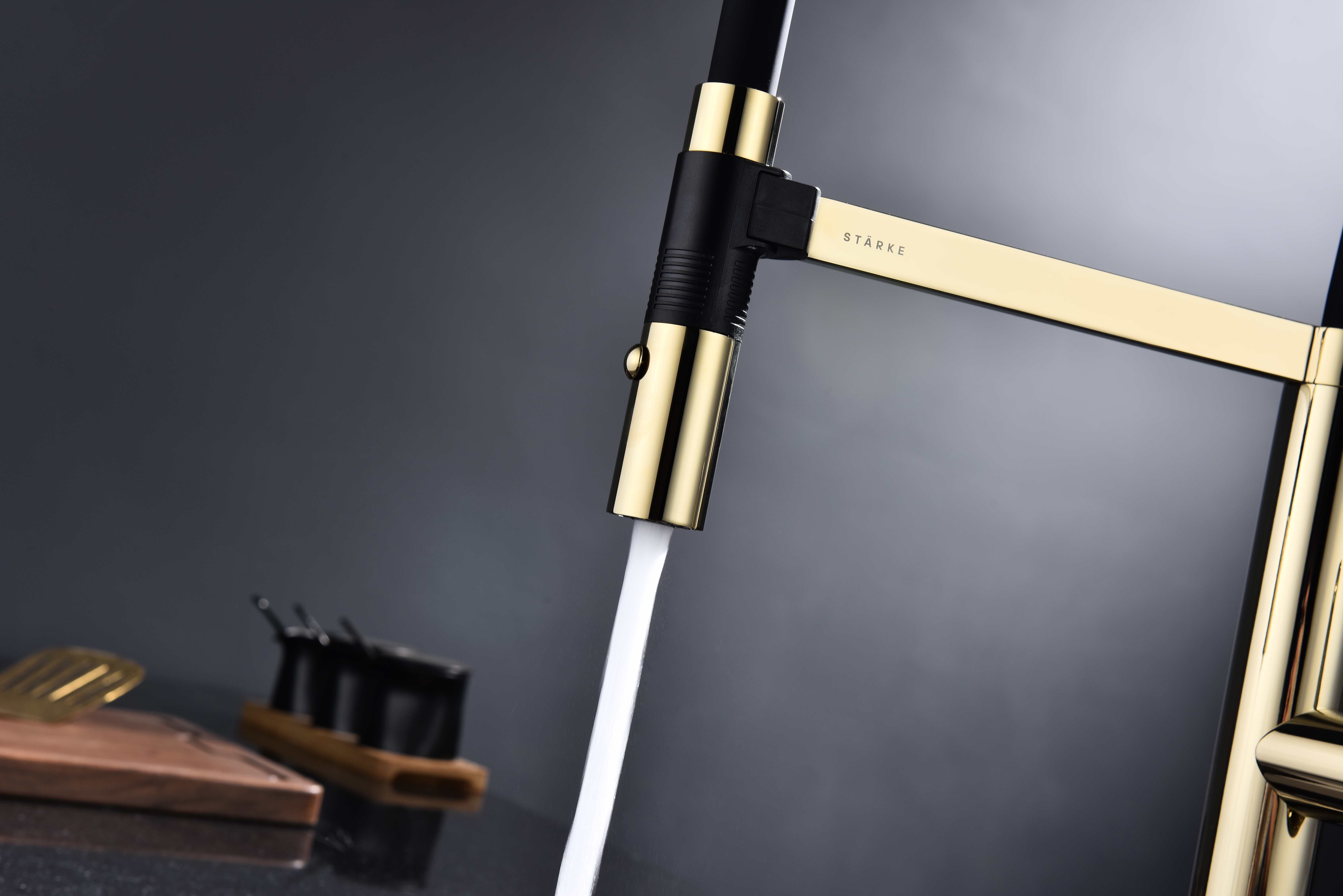 Излив смесителя выполнен из высокопрочного силикона. Конструкцией предусмотрен магнитный механизм фиксации излива.